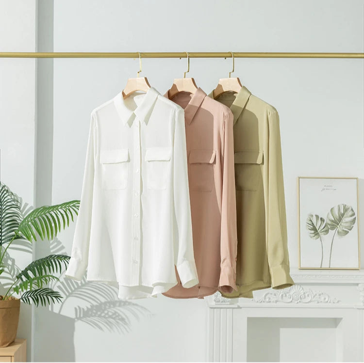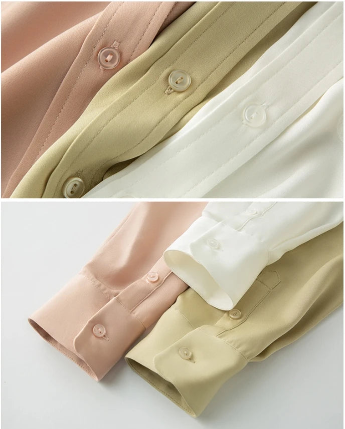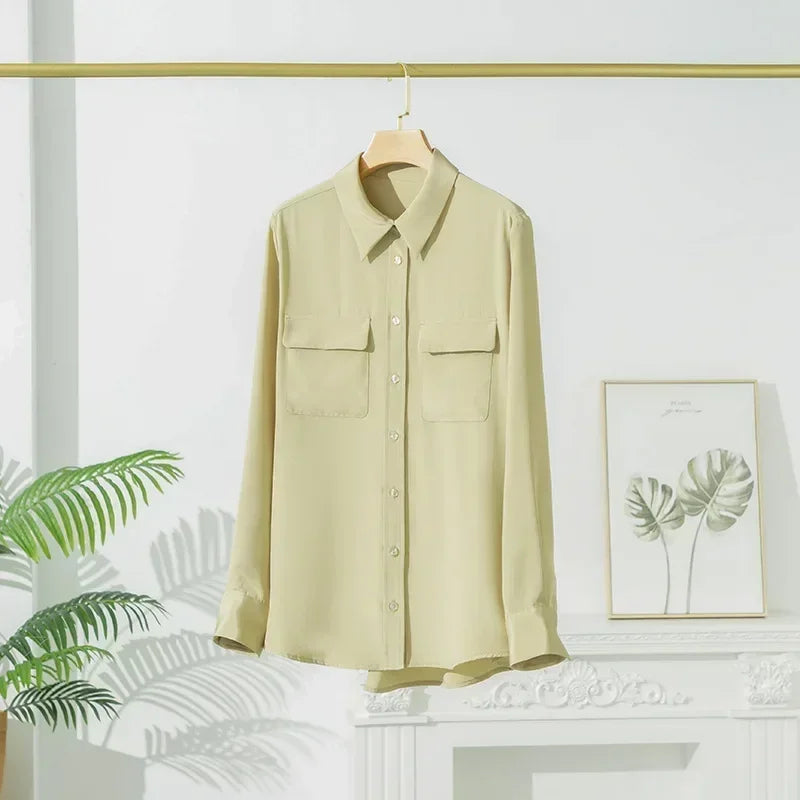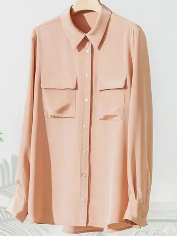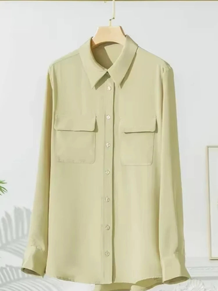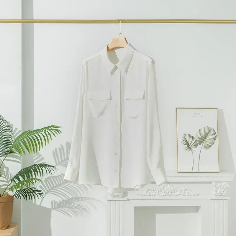 2025 Spring New Heavy Silk Shirt Women's Long Sleeve Mulberry Silk Blouse Temperament White Shirt Loose Top 93% Mulberry Silk