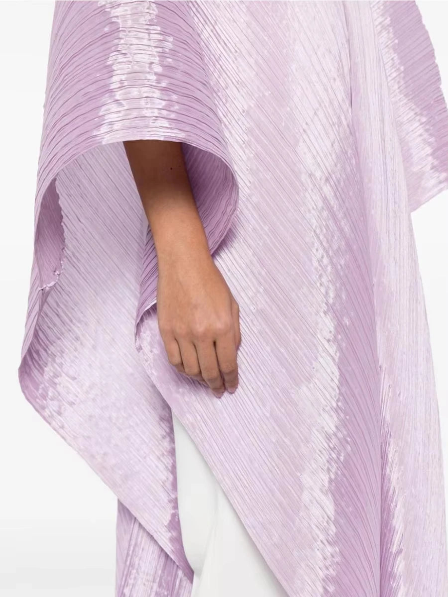 Miyake Pleated Women's Medium Length V-neck Drooping Blouse Dress