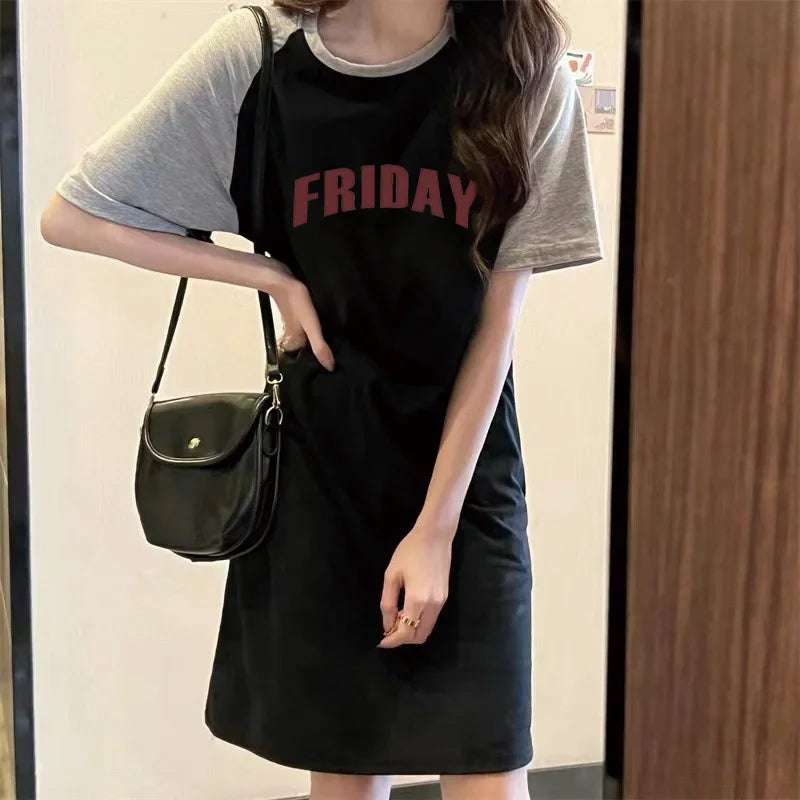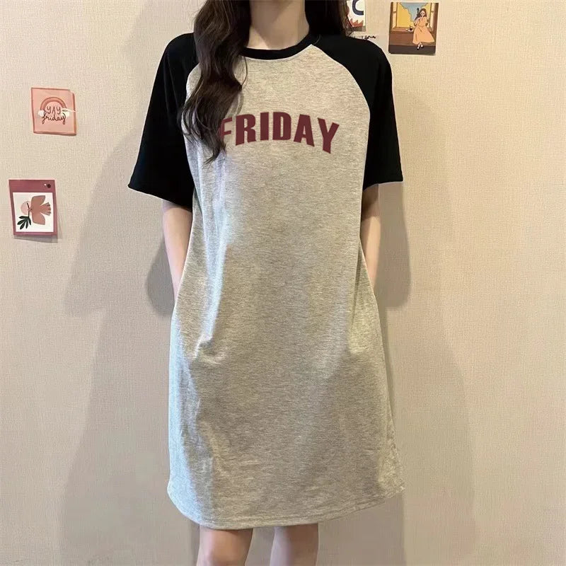 Summer American Trend Lettered Loose Round-neck Short-sleeved Women's Dress