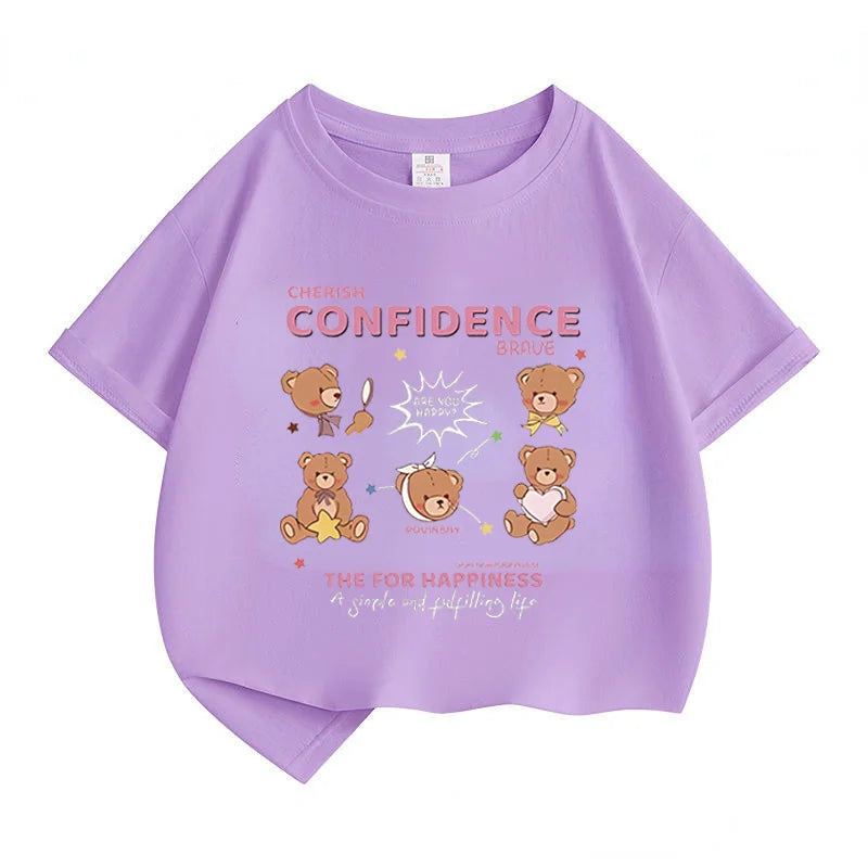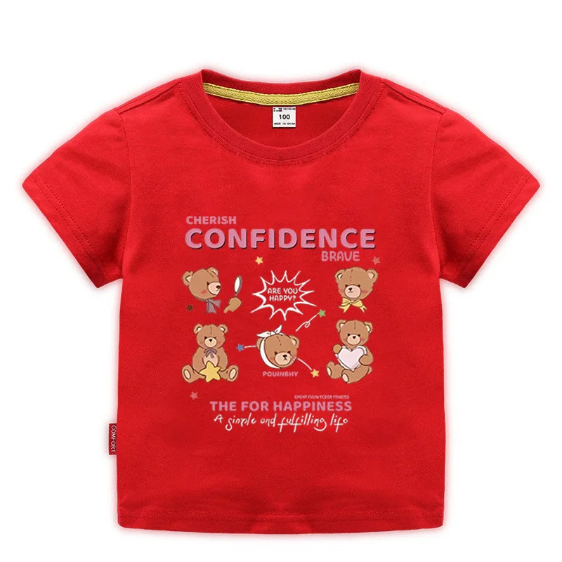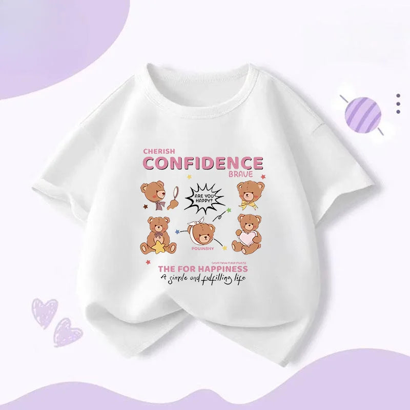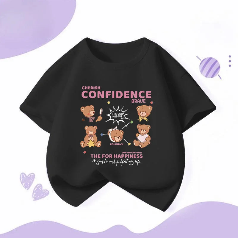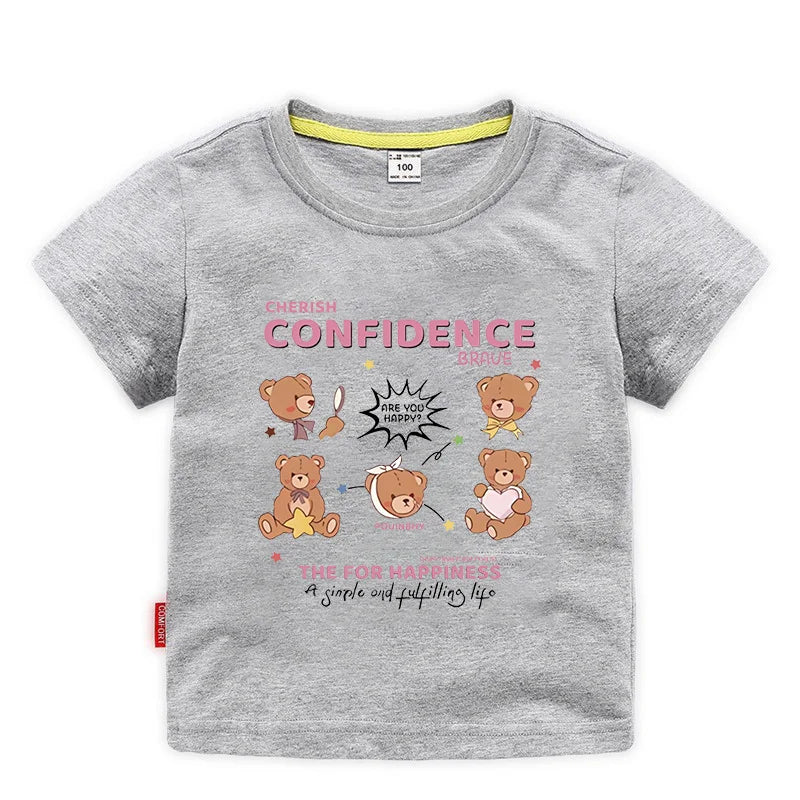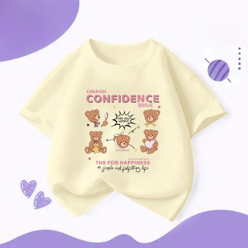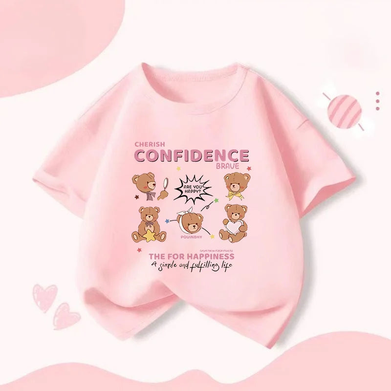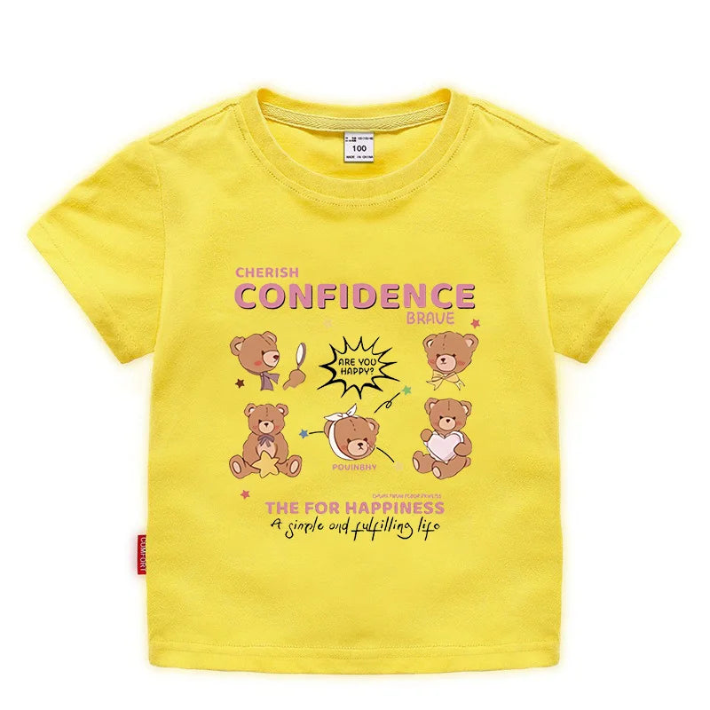 Summer Japanese Cartoon Cute Bear Print Boys and Girls' Short-sleeved T-shirts with Casual Bottoms